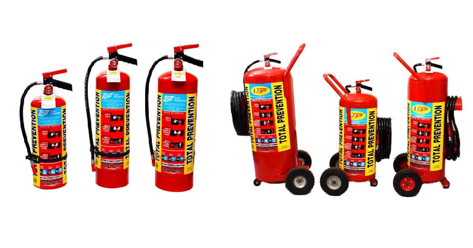 Los extintores de Polvo Químico Seco a base de Fosfato Mono Amónico al 75% de concentración son el agente extinguidor de fuego más efectivo y versátil ya que está especificado para clases de fuego A, B y C siendo estos los más comunes en las instalaciones Industriales, Comerciales y Habitacionales, son fabricados en cilindros de lámina calibres 14 rolada en frio, electro soldados, fosfatizados y acabados en pintura color rojo brillante en las siguientes presentaciones.