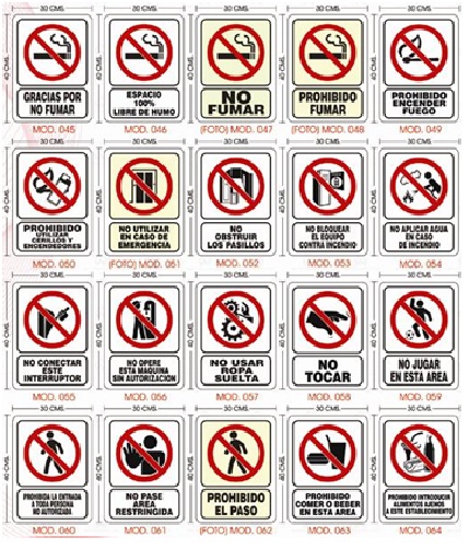Las señales son fabricadas en estireno calibre 16 o en cristal acrílico con o sin fotoluminicente en las formas y tamaños que establecen las Normas Oficiales Mexicanas NOM-003-SEGOB-2011, NOM-026-STPS-2008 y PEMEX, en donde usted encontrara las que le aplican obligatoriamente a su Industria o Establecimiento Mercantil y que le permitirá cumplir con la normatividad vigente o si lo desea puede contactarnos en donde un asesor con gusto le ayudara.